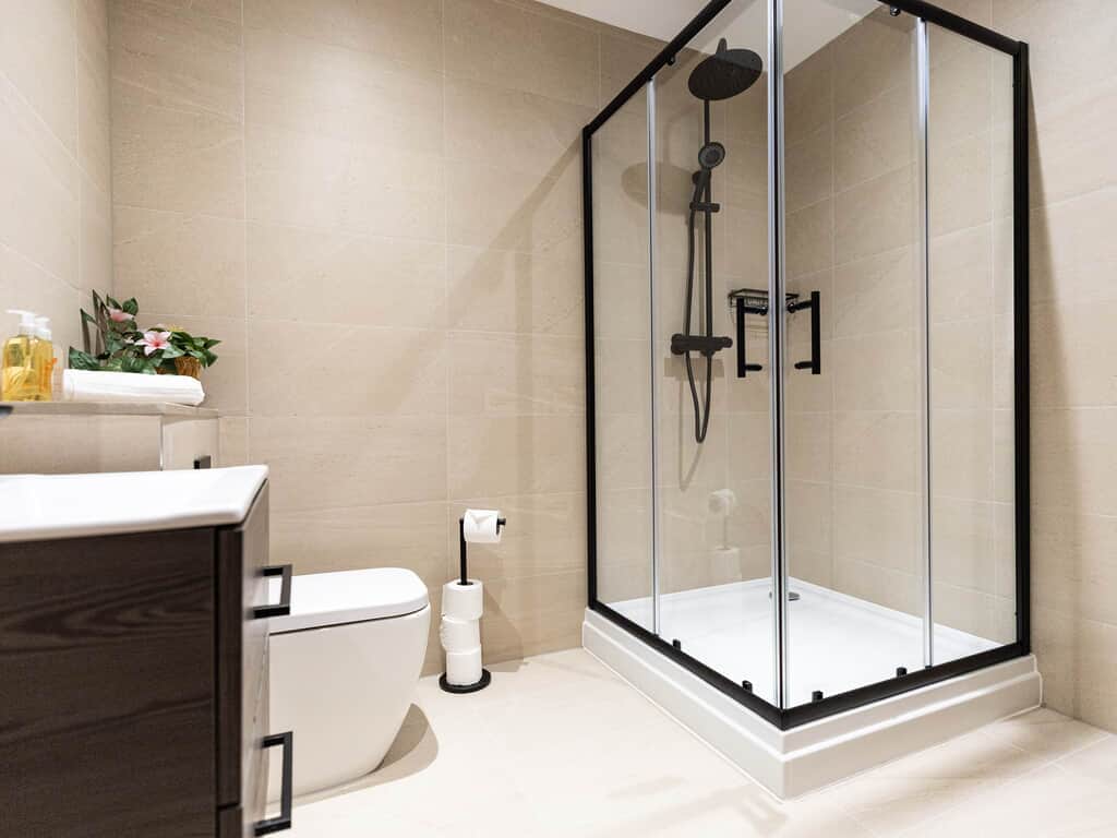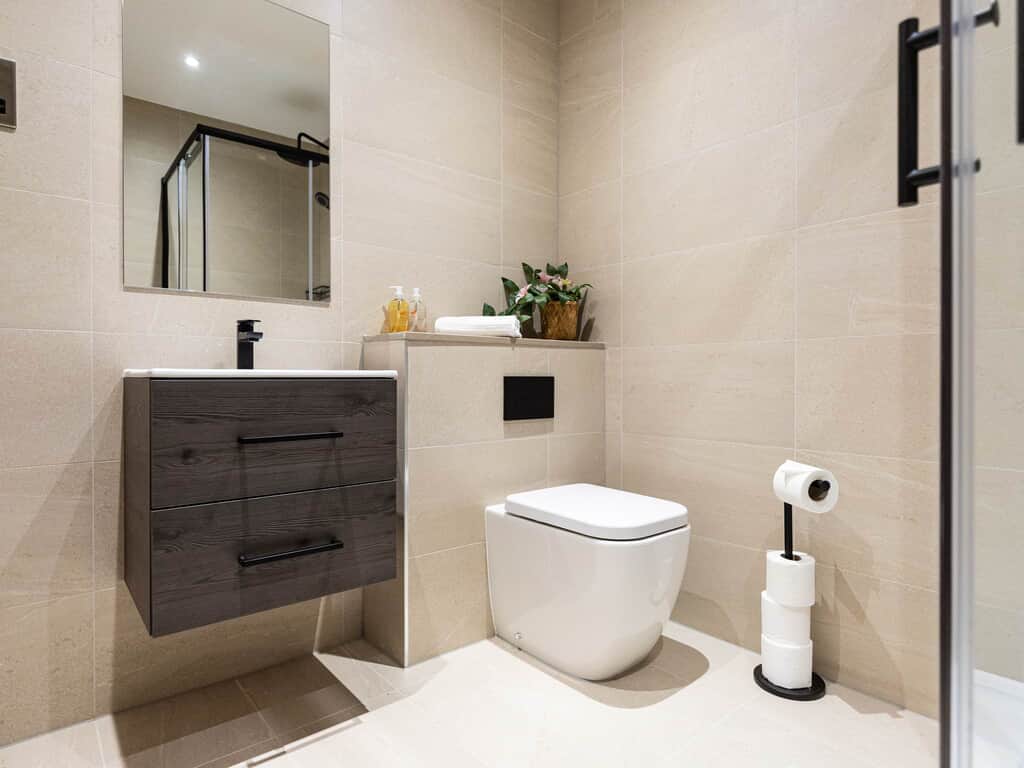 Access to the shower room is via the bedroom only no access from the living area
