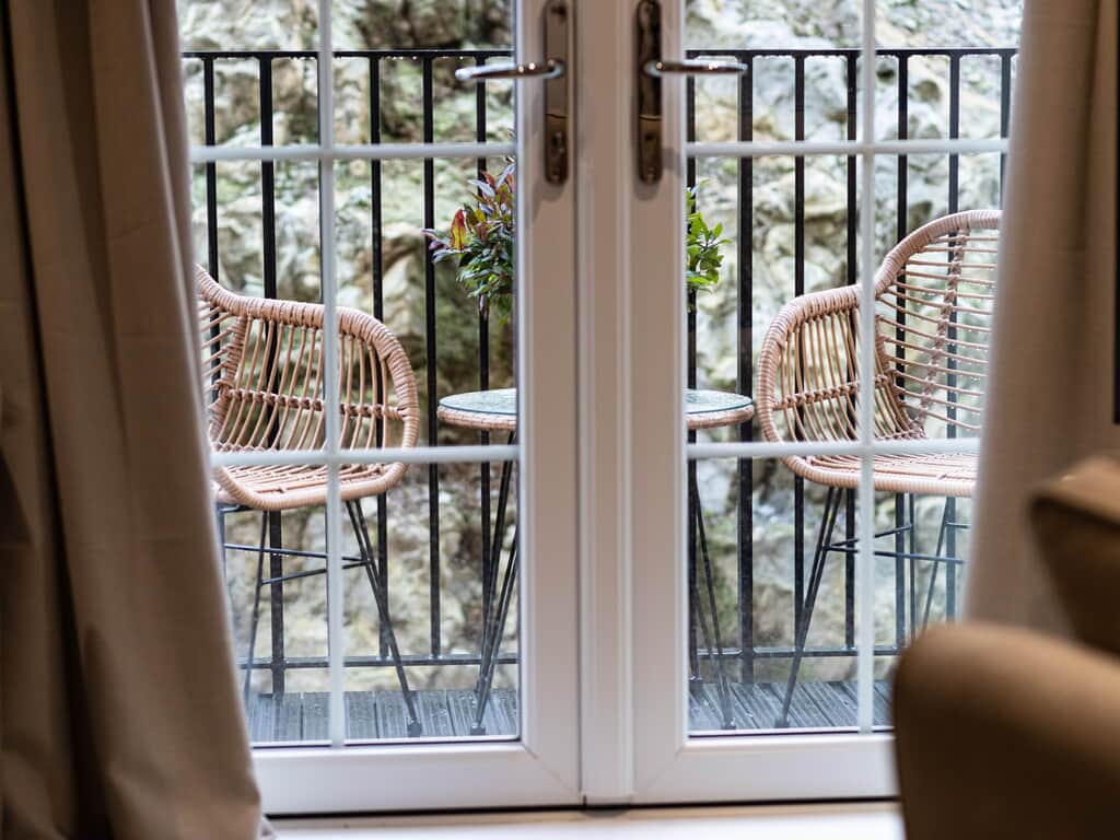 Luxury furnishings to make your stay a cosy and comfortable one with 2 comfy armchairs, Smart TV and French Doors opening to a small balcony. There is a dining table that can seat 2.