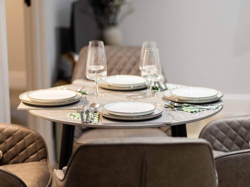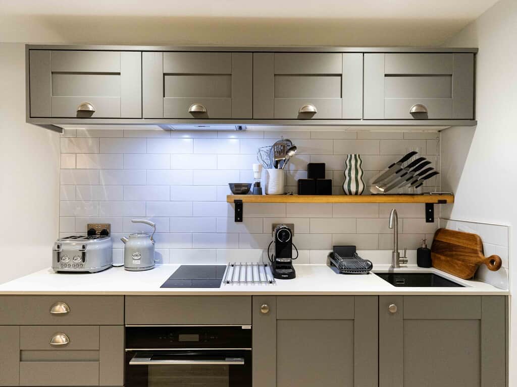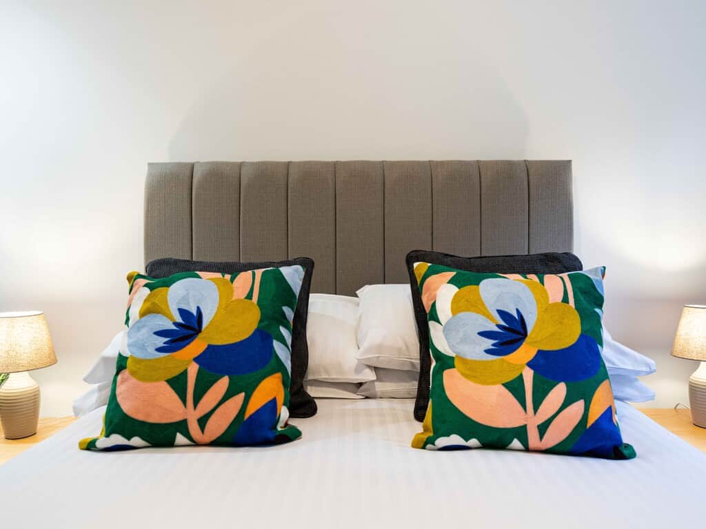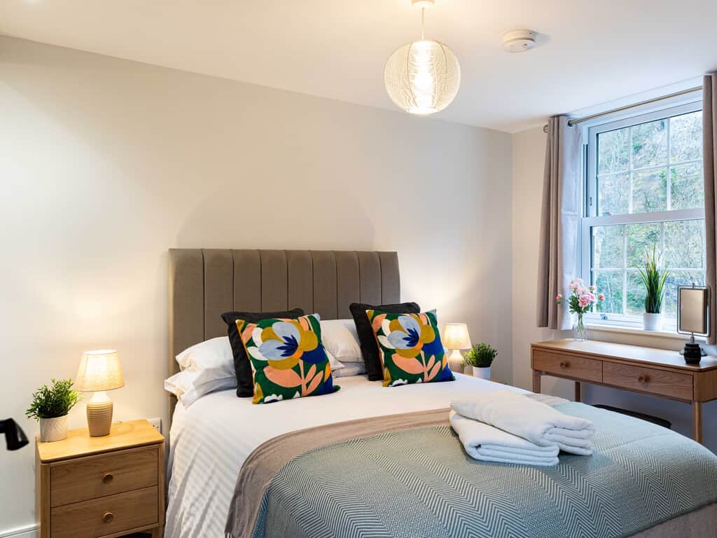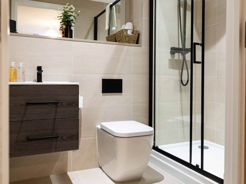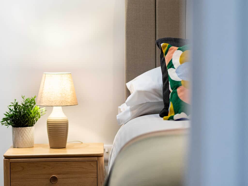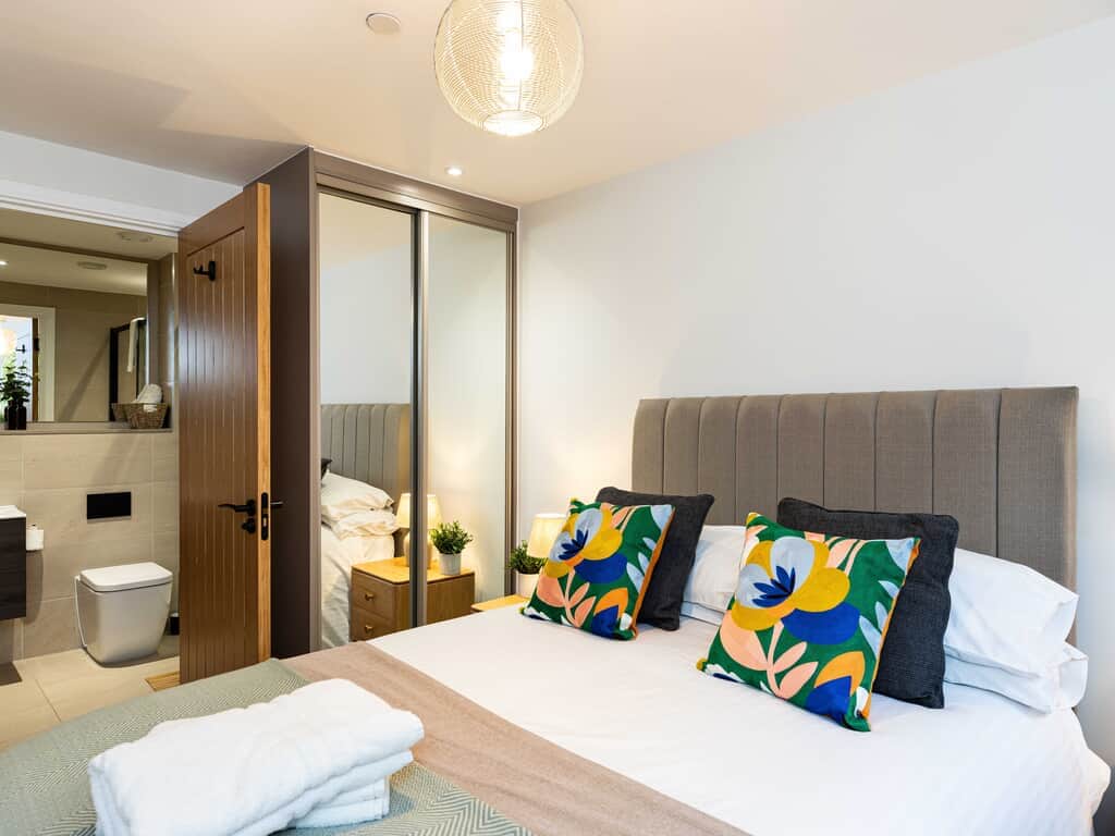 With lift access to all floors this stunning second floor apartment has everything you need for a comfortable stay. This 1 bed apartment offers a Super King double or twin bed, built in wardrobe, dressing table and stool plus bedside tables and lamps giving you a warm and cosy space to relax at the end of a busy day.
