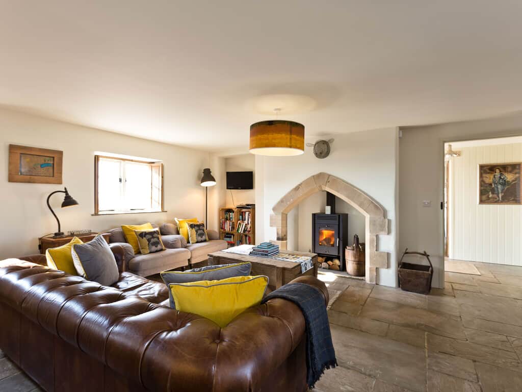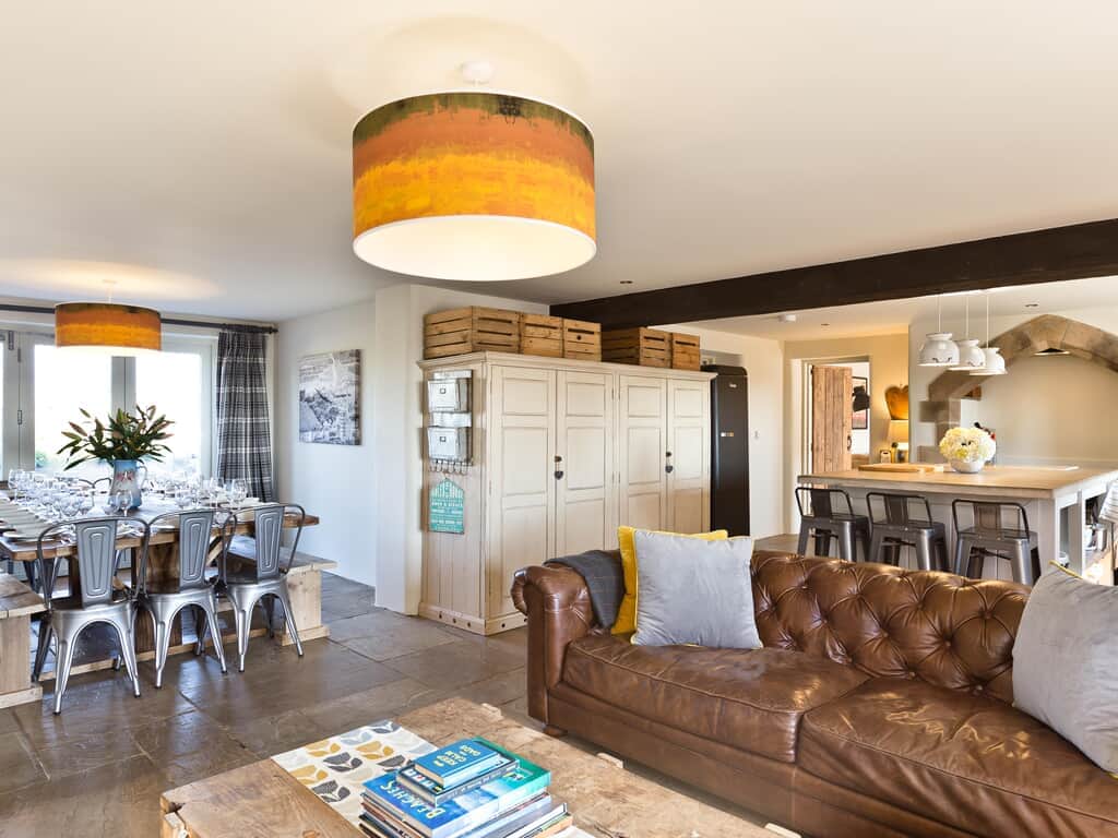 The Barn has two lounges, one is within the open plan kitchen / dining area with French doors leading you to outside, you have a comfy leather sofa, TV and underfloor heating. The second lounge is cosy with leather sofas, TV and inviting log burner.